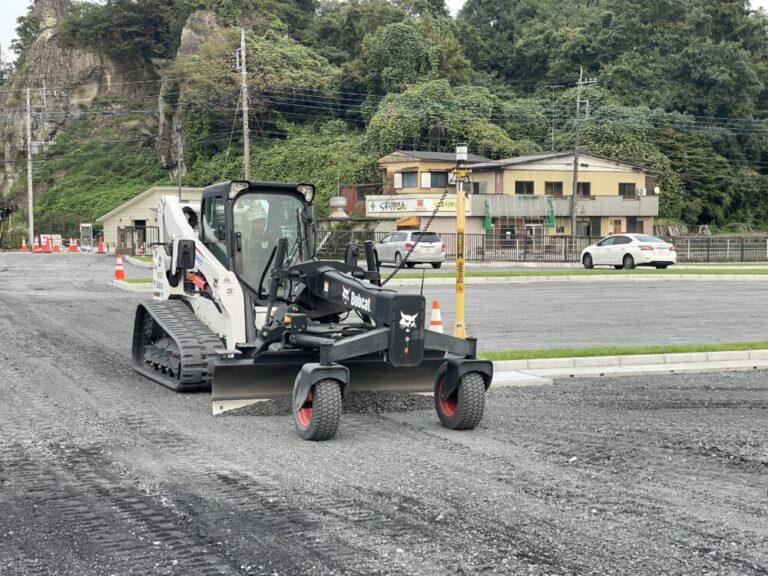 駐車場路盤の整正にBobcatの3Dマシンコントロールシステムを導入しました。